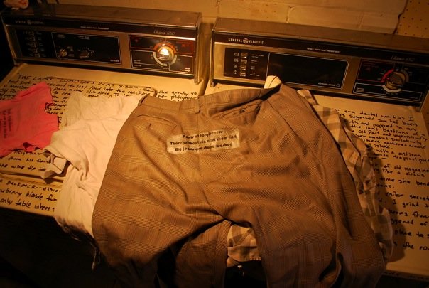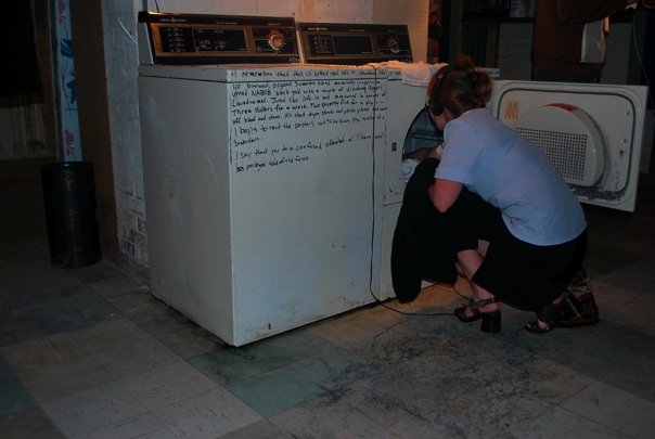 Materials: Laundry machines, permanent marker, several items of used clothing with laundromat-related haiku, 1 polyphonic wash/dry cycle of a Luandromatopoeic jazz composition layered on top of Hein Van Der Gaag’s Angelica.